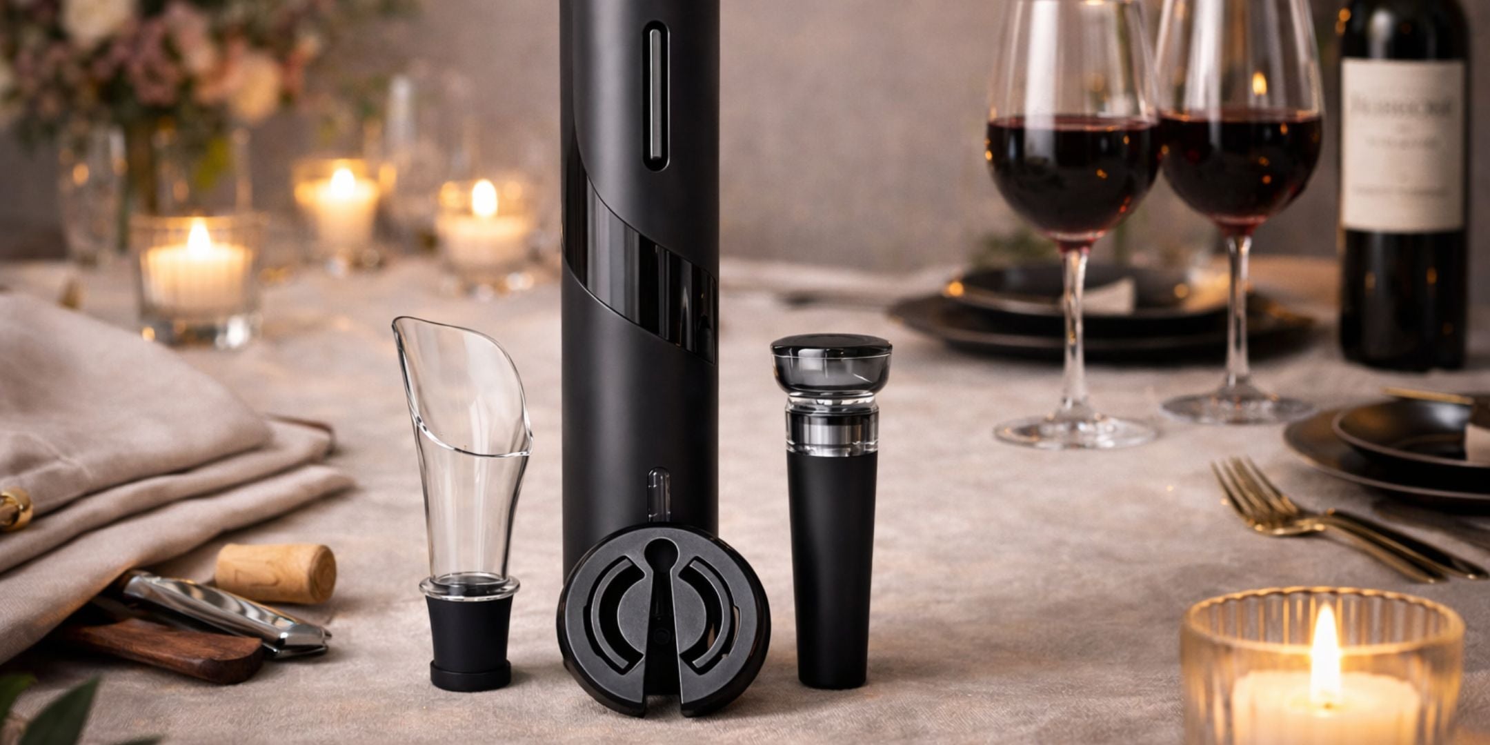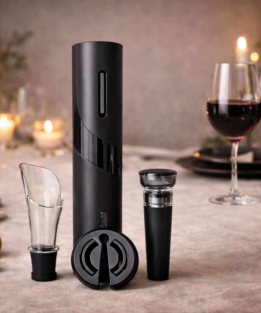 O Kit Abridor Saca-Rolhas Elétrico foi criado para transformar a experiência de abrir vinhos em algo simples, rápido e sofisticado.