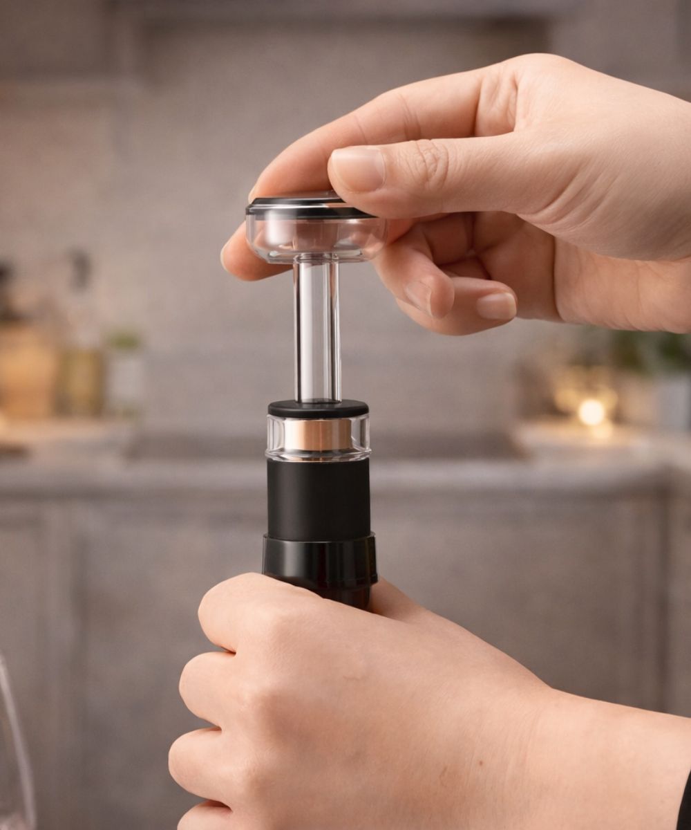 Com apenas um toque, você remove a rolha sem esforço, sem bagunça e sem complicação, ideal para quem quer aproveitar o momento sem interrupções.